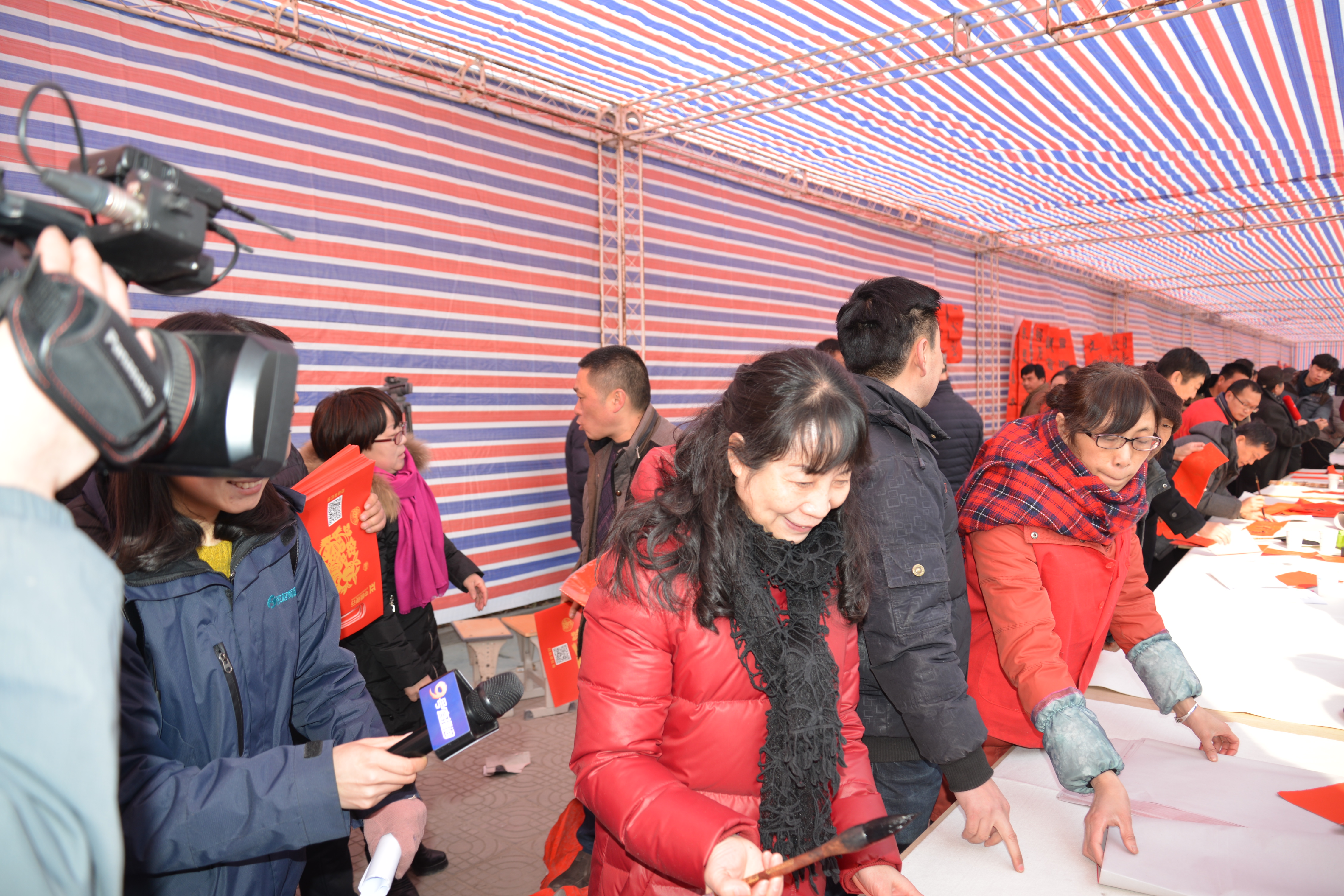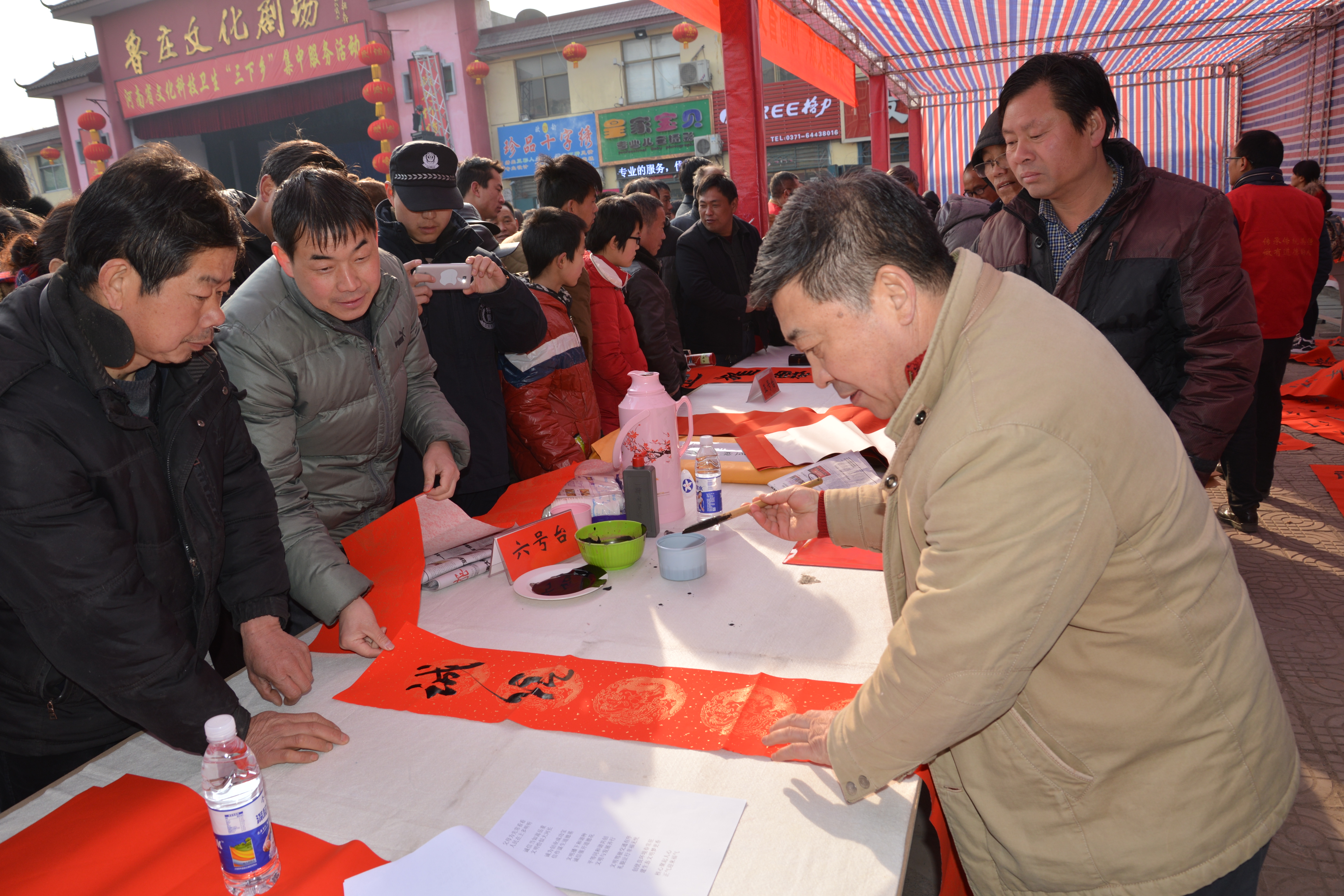 隨后,二十多名省內(nèi)著名書法家揮毫潑墨,應(yīng)邀為村民書寫春聯(lián),受到村民的歡迎,魯莊鎮(zhèn)村民陳大爺說,“這寫的真不錯(cuò),比買的好,得好好收藏著。”